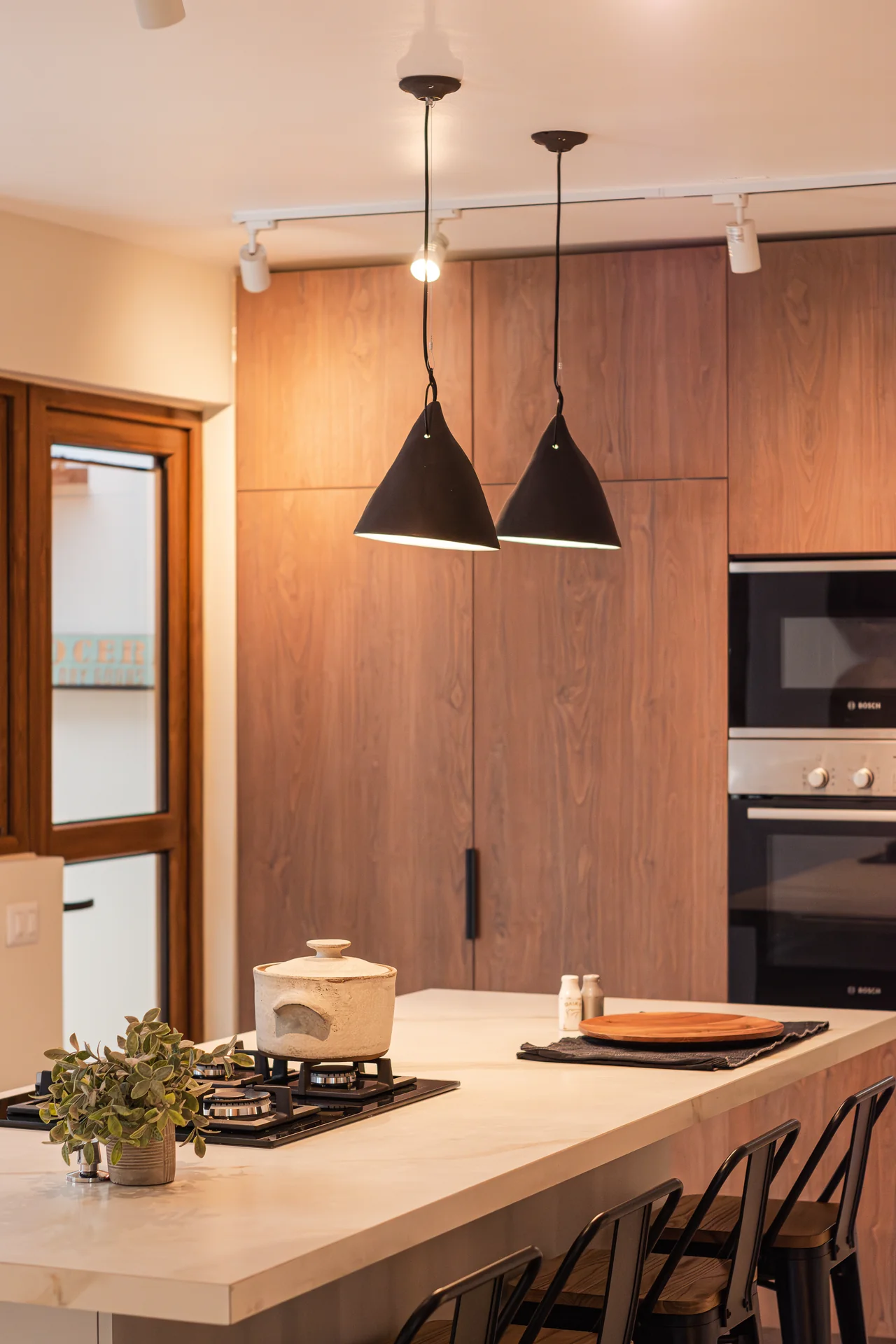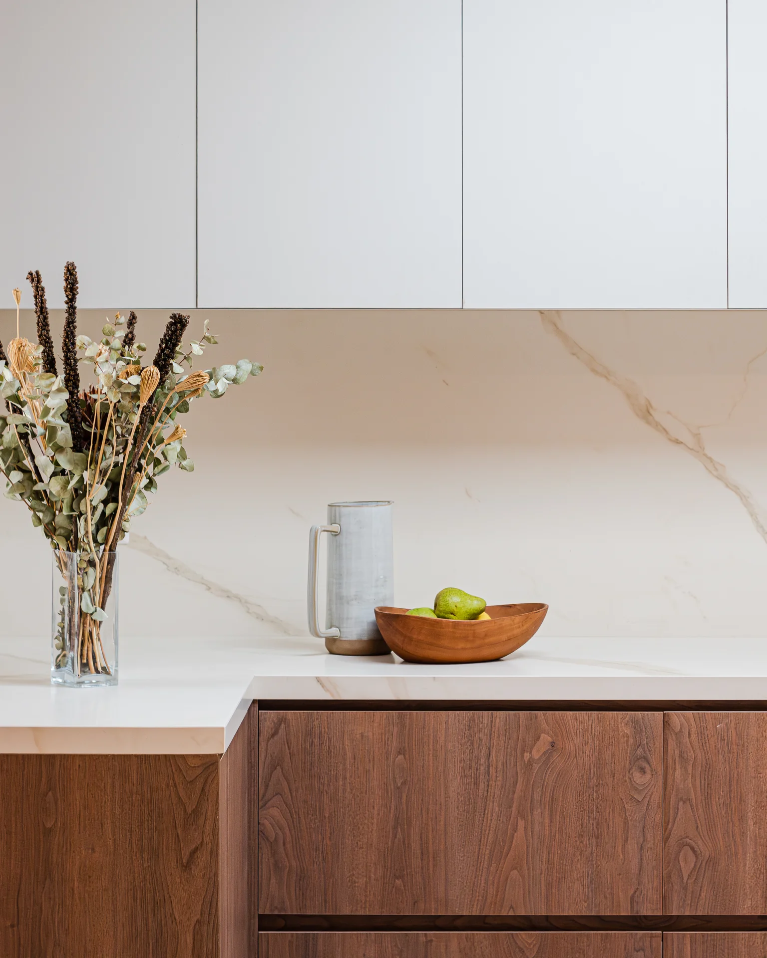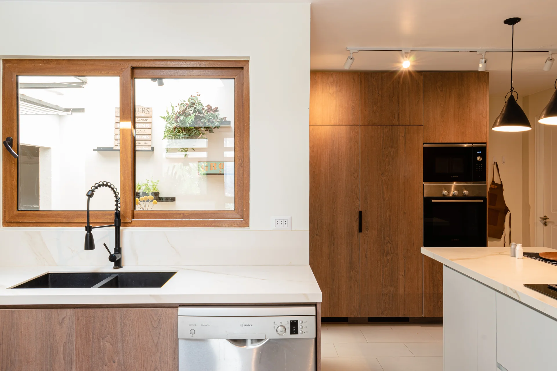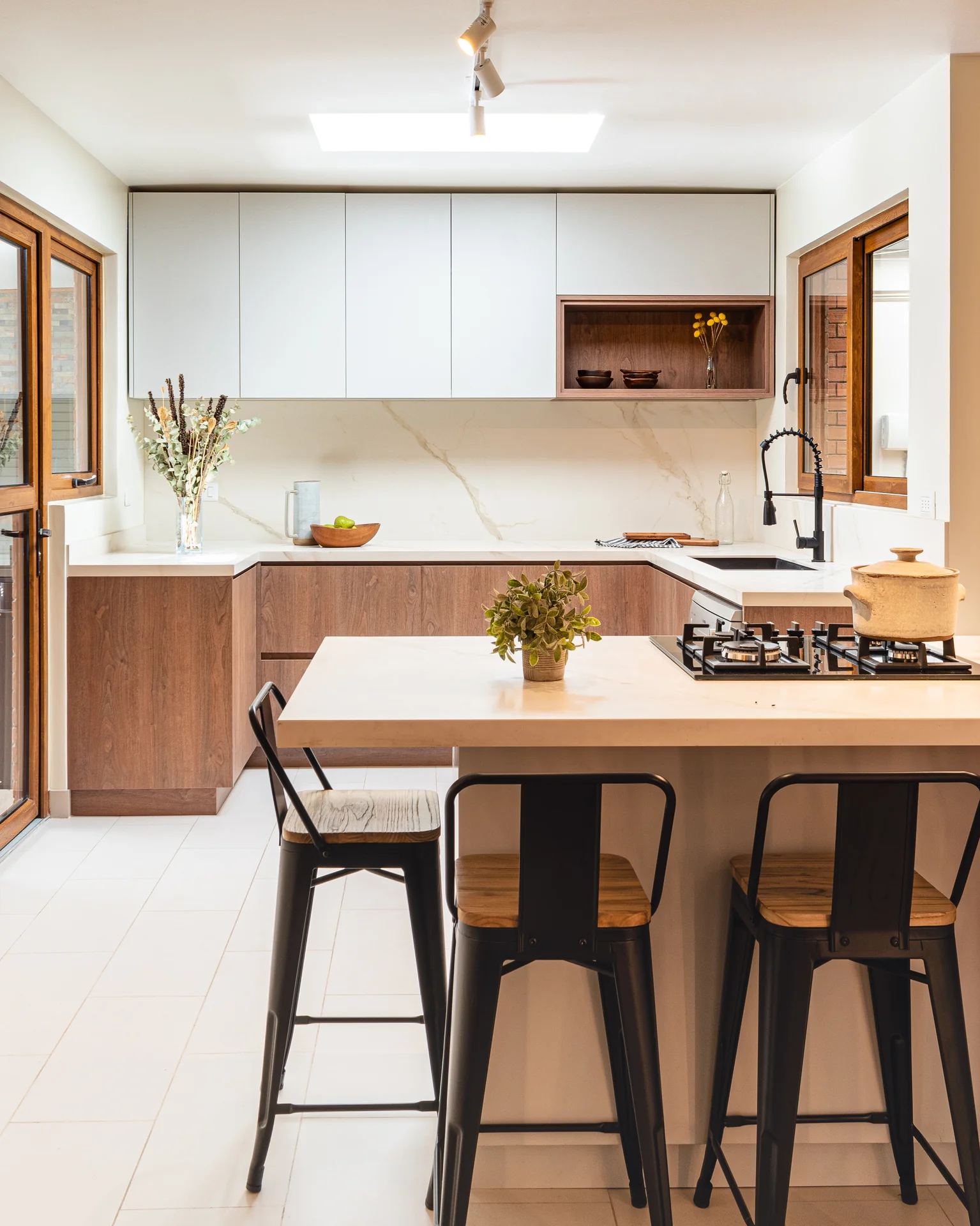 Este proyecto parte de una lectura atenta del espacio y de cómo se habita. La cocina La Huala Ii se articula a partir de frentes lisos en madera, junto a cubiertas y salpicadero de piedra sinterizada, definidos como un conjunto coherente donde la materialidad y el uso cotidiano se integran con naturalidad. Cada decisión está orientada a ordenar el espacio y acompañar el día a día del hogar con naturalidad y continuidad.