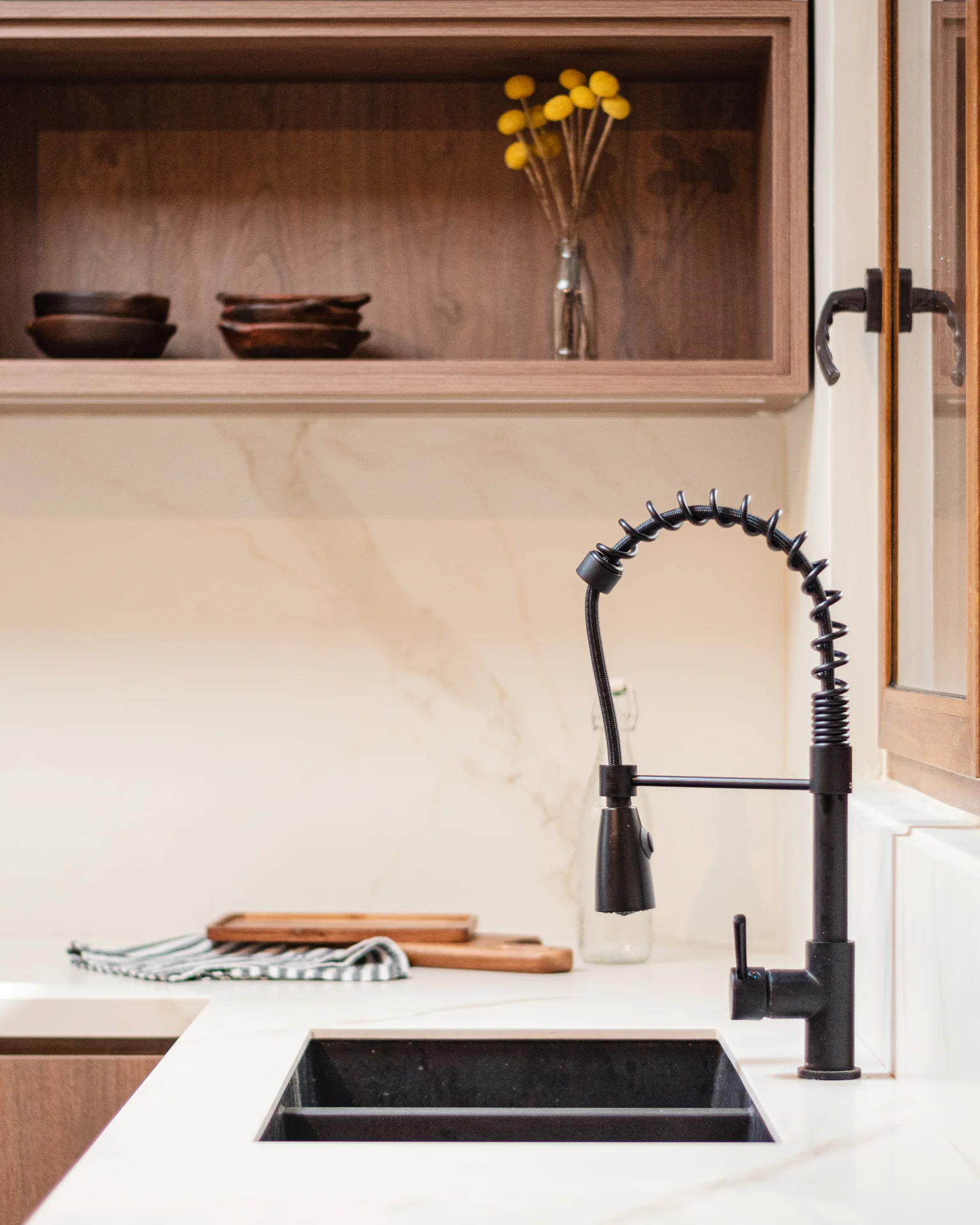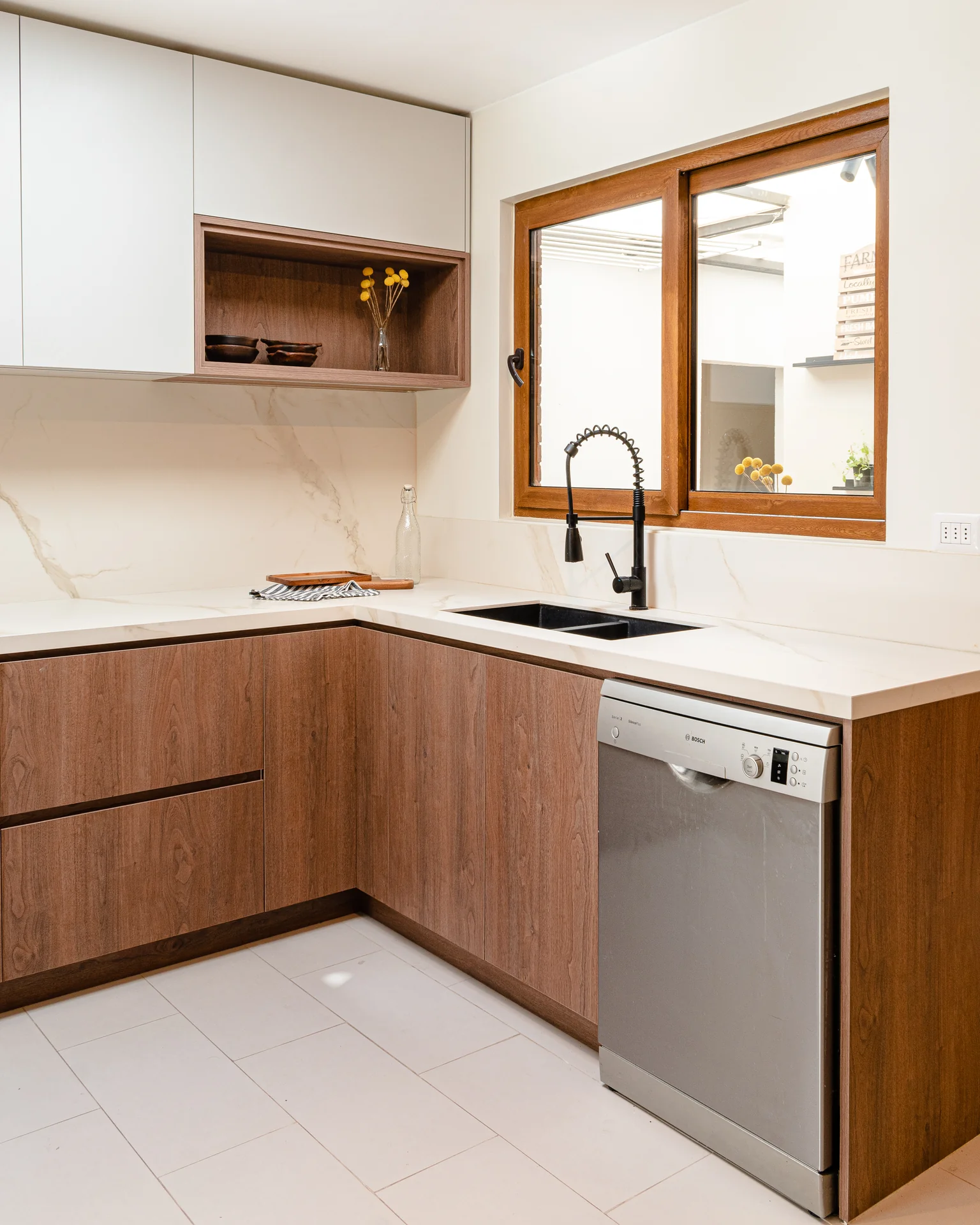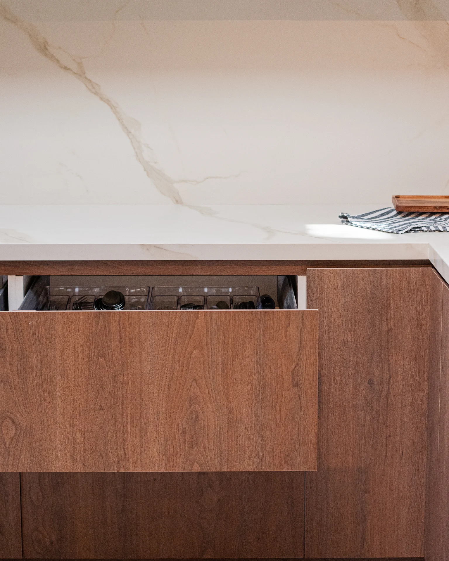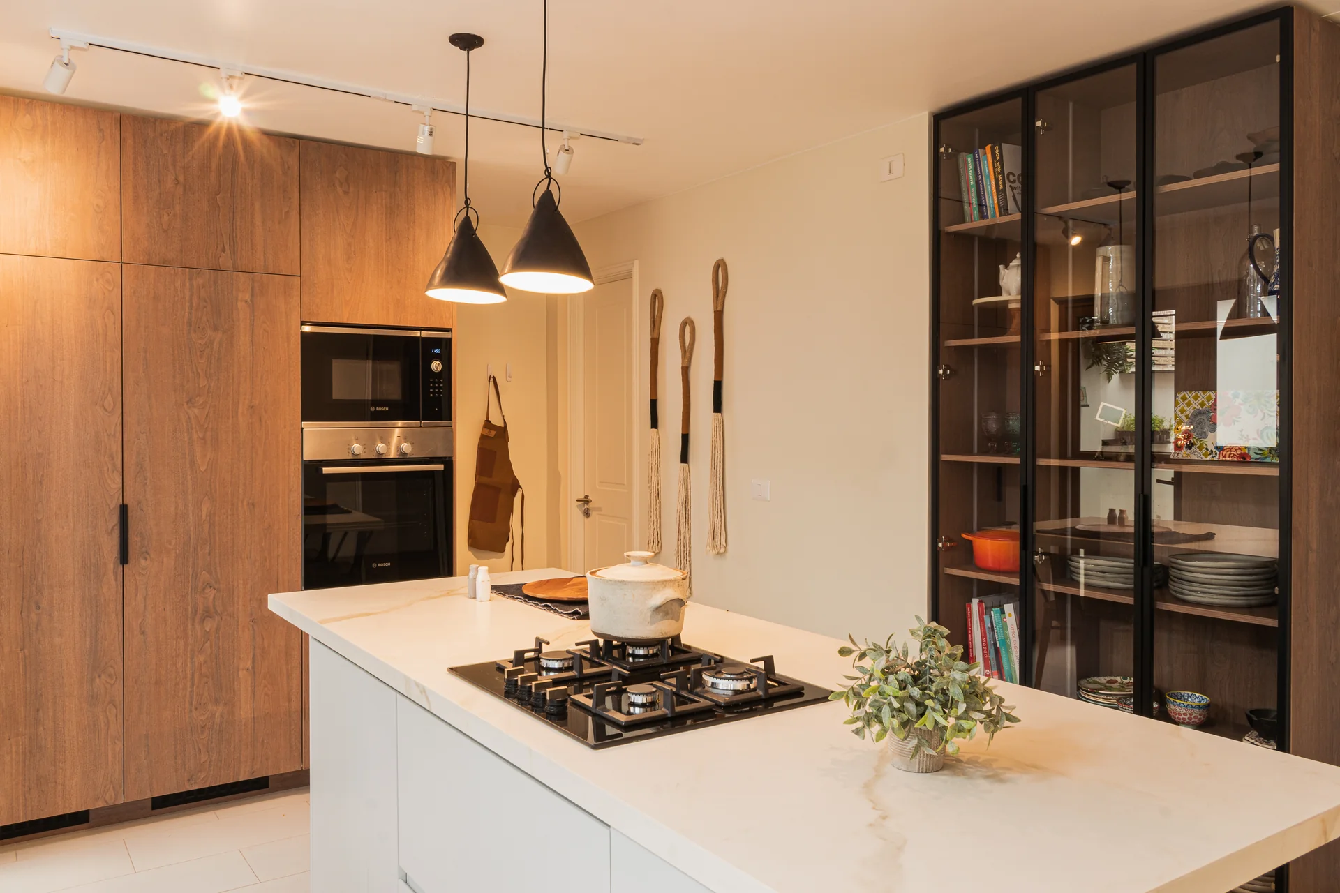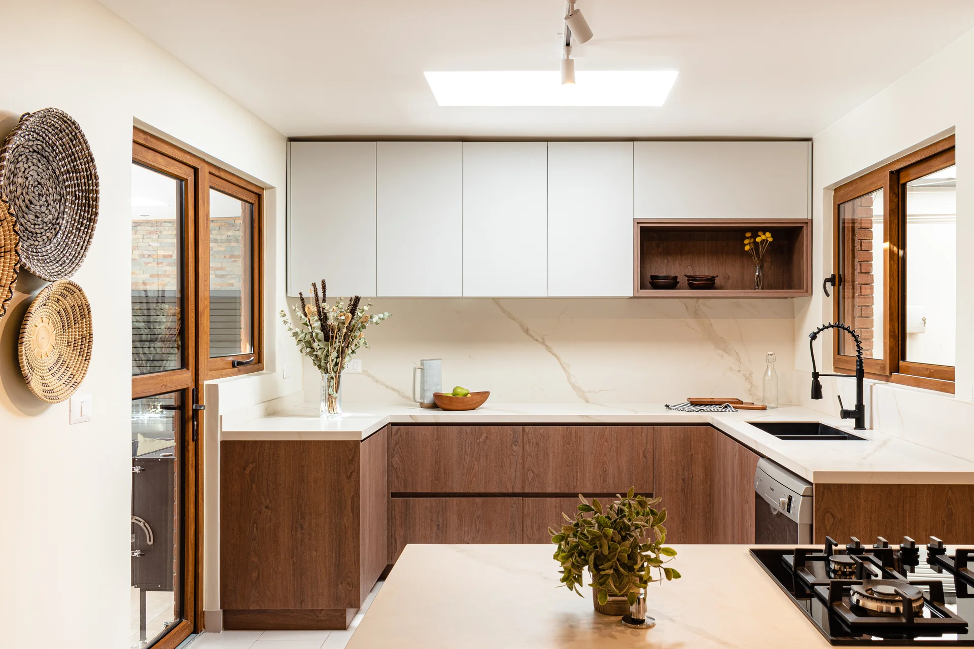 Este proyecto parte de una lectura atenta del espacio y de cómo se habita. La cocina La Huala Ii se articula a partir de frentes lisos en madera, junto a cubiertas y salpicadero de piedra sinterizada, definidos como un conjunto coherente donde la materialidad y el uso cotidiano se integran con naturalidad. Cada decisión está orientada a ordenar el espacio y acompañar el día a día del hogar con naturalidad y continuidad.