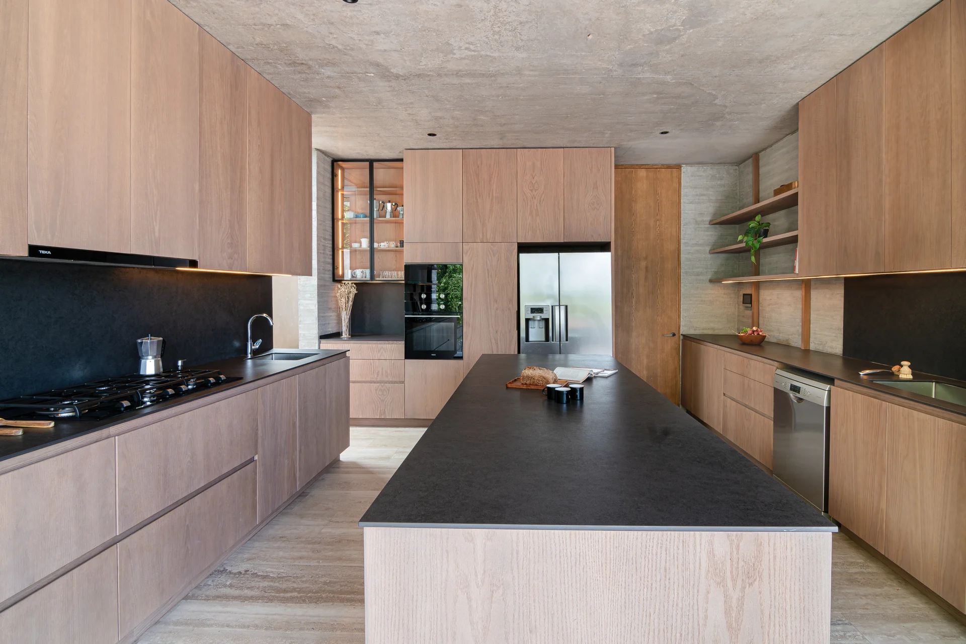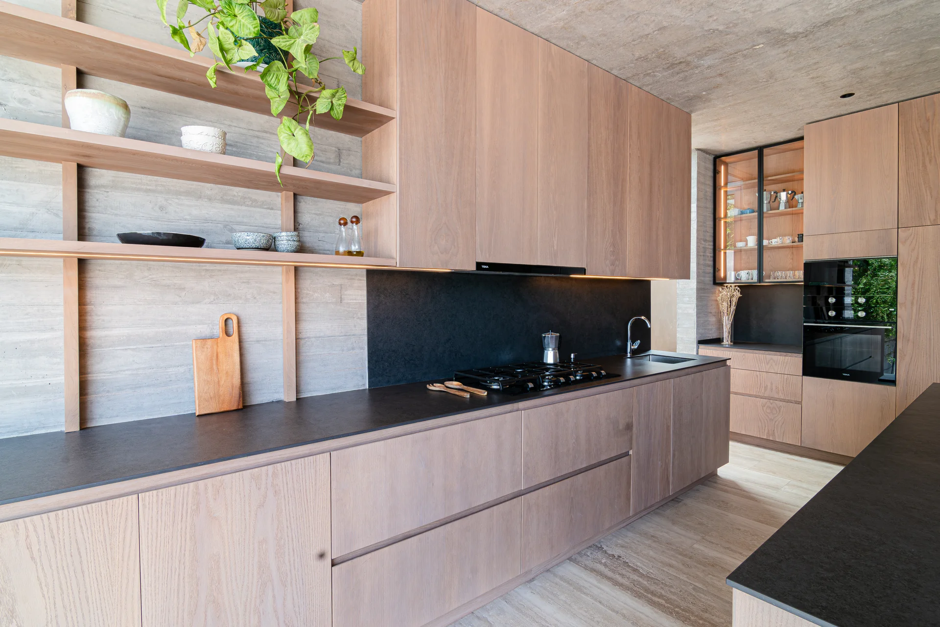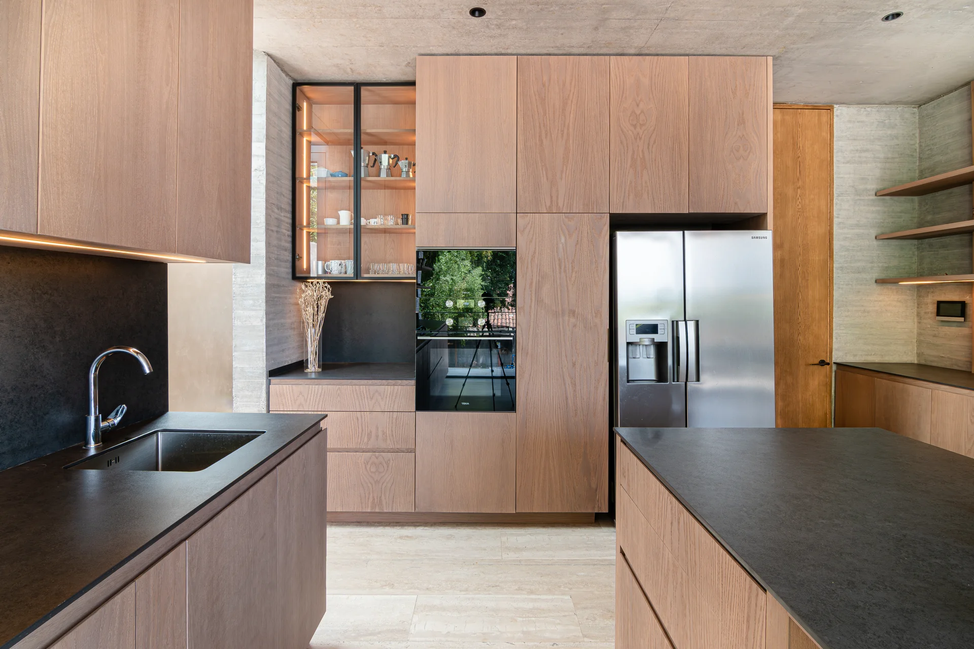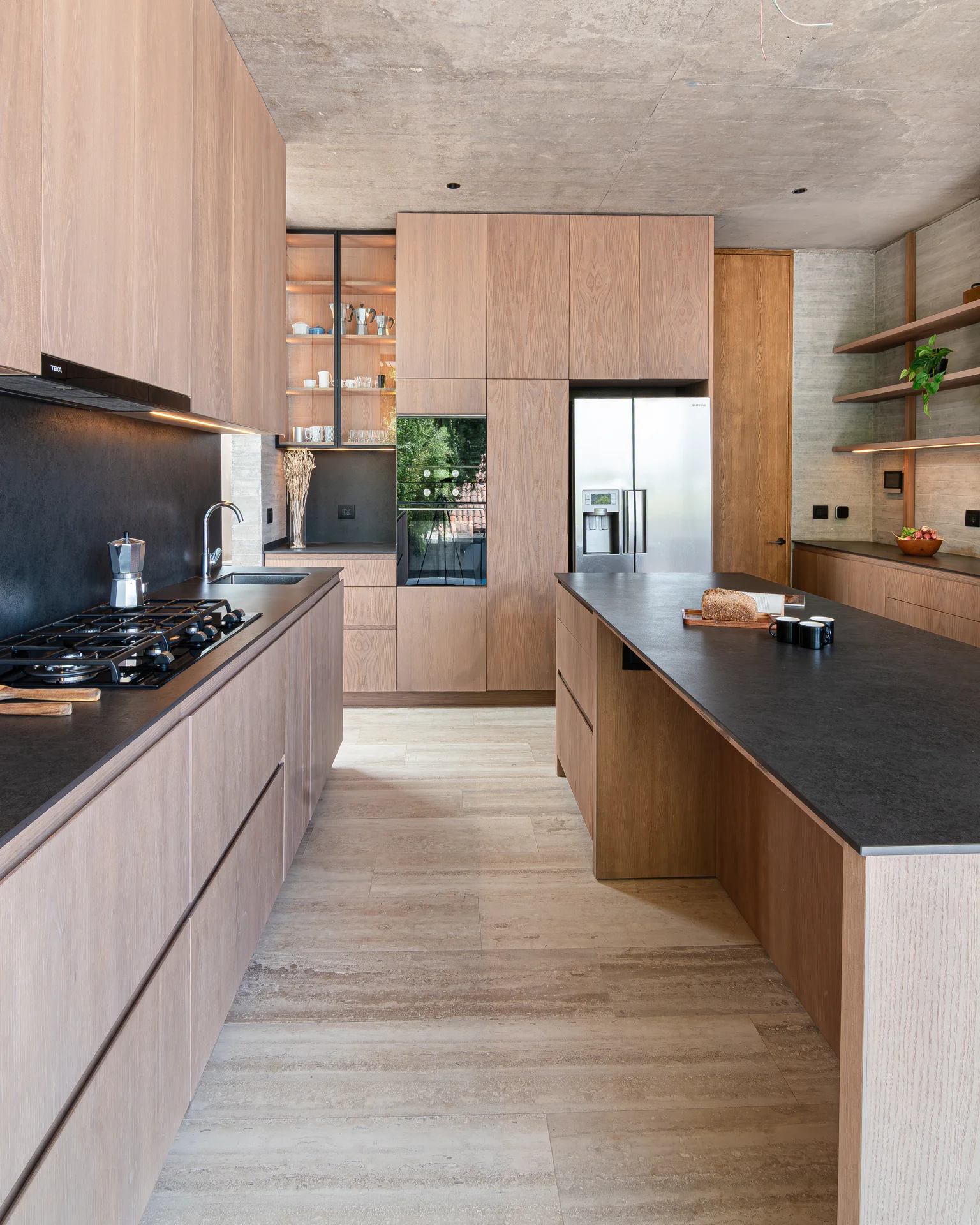 Este proyecto parte de una lectura atenta del espacio y de cómo se habita. La cocina Mirador se articula a partir de frentes lisos en madera, junto a cubiertas y salpicadero de piedra sinterizada, definidos como un conjunto coherente donde la materialidad y el uso cotidiano se integran con naturalidad. Cada decisión está orientada a ordenar el espacio y acompañar el día a día del hogar con naturalidad y continuidad.