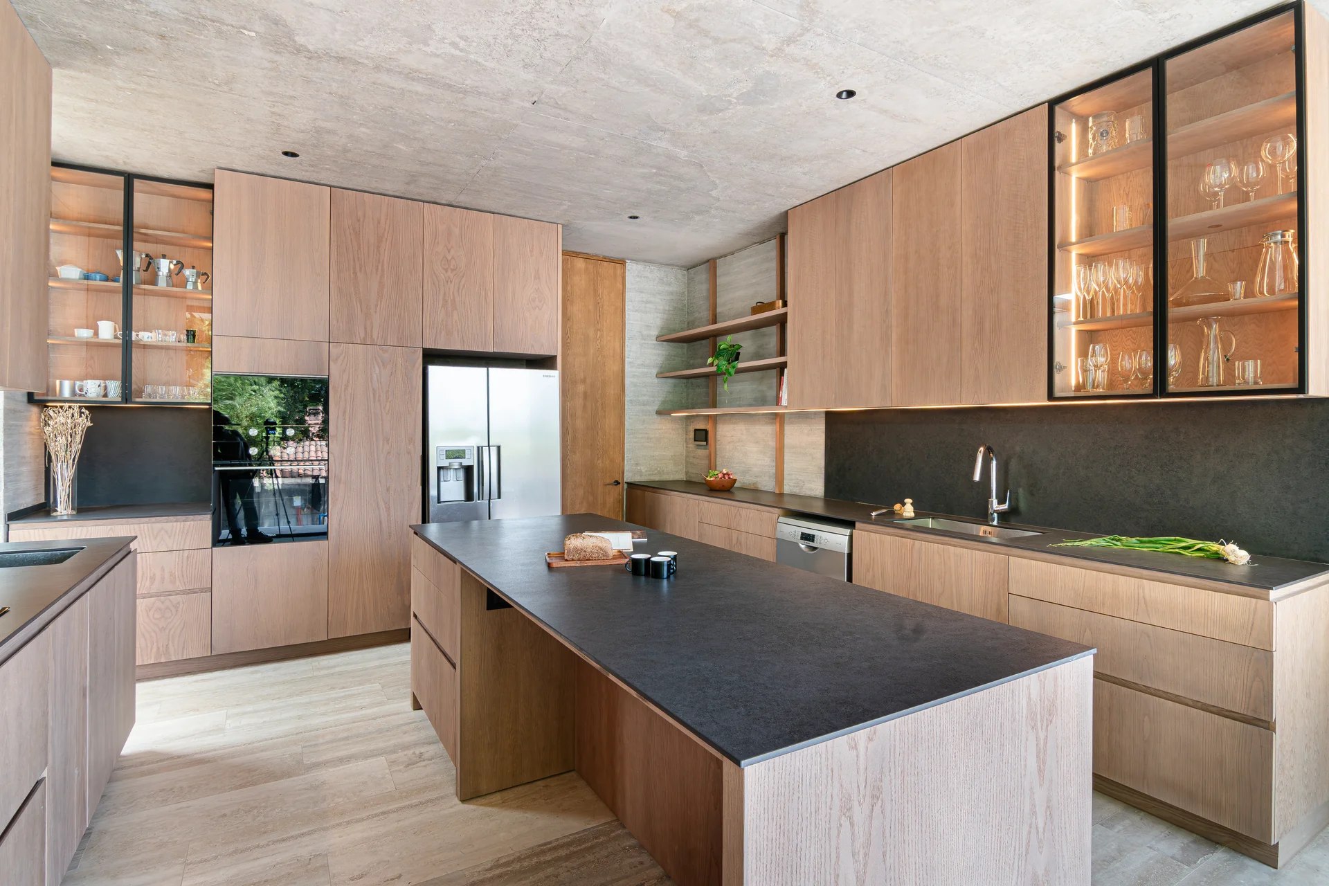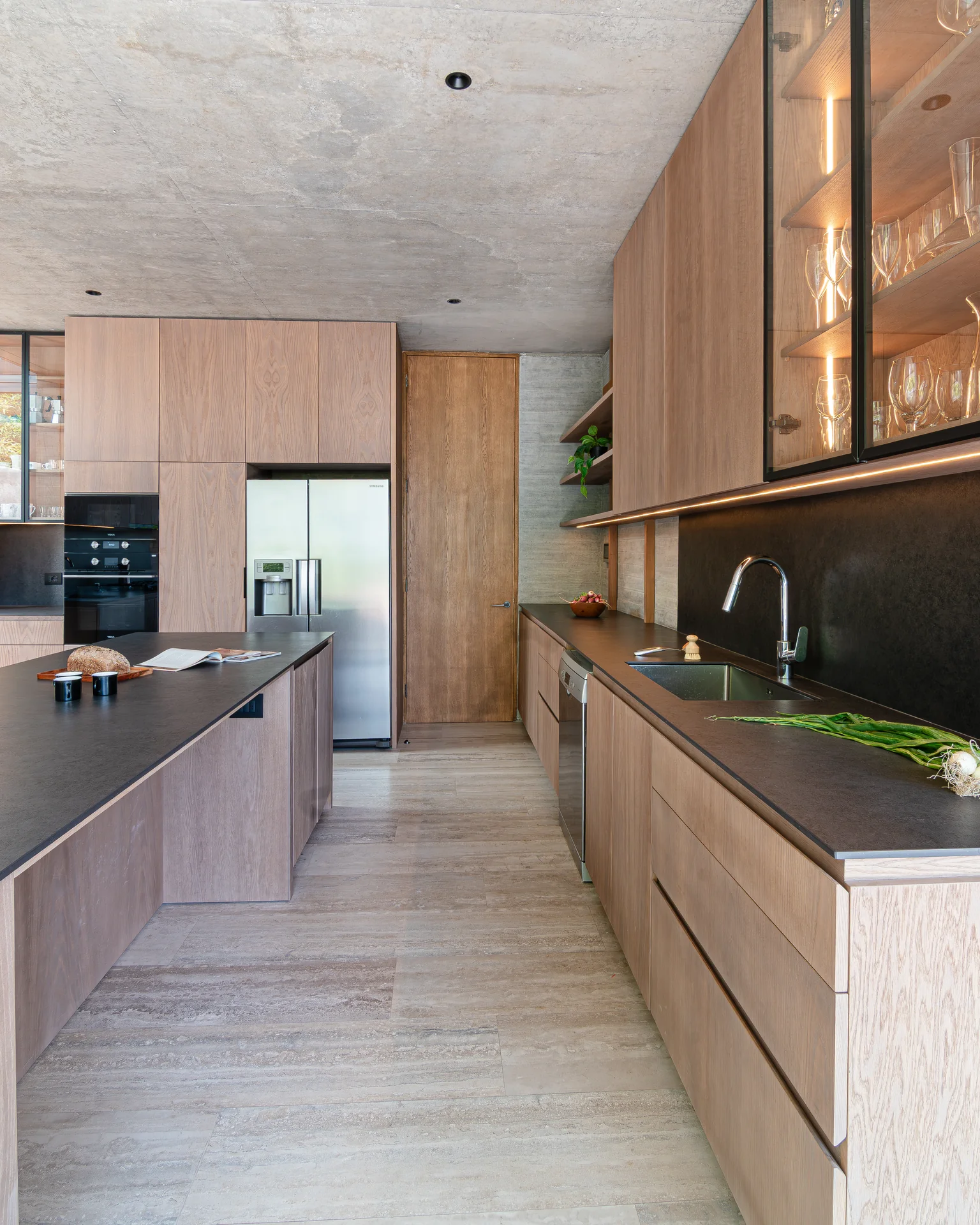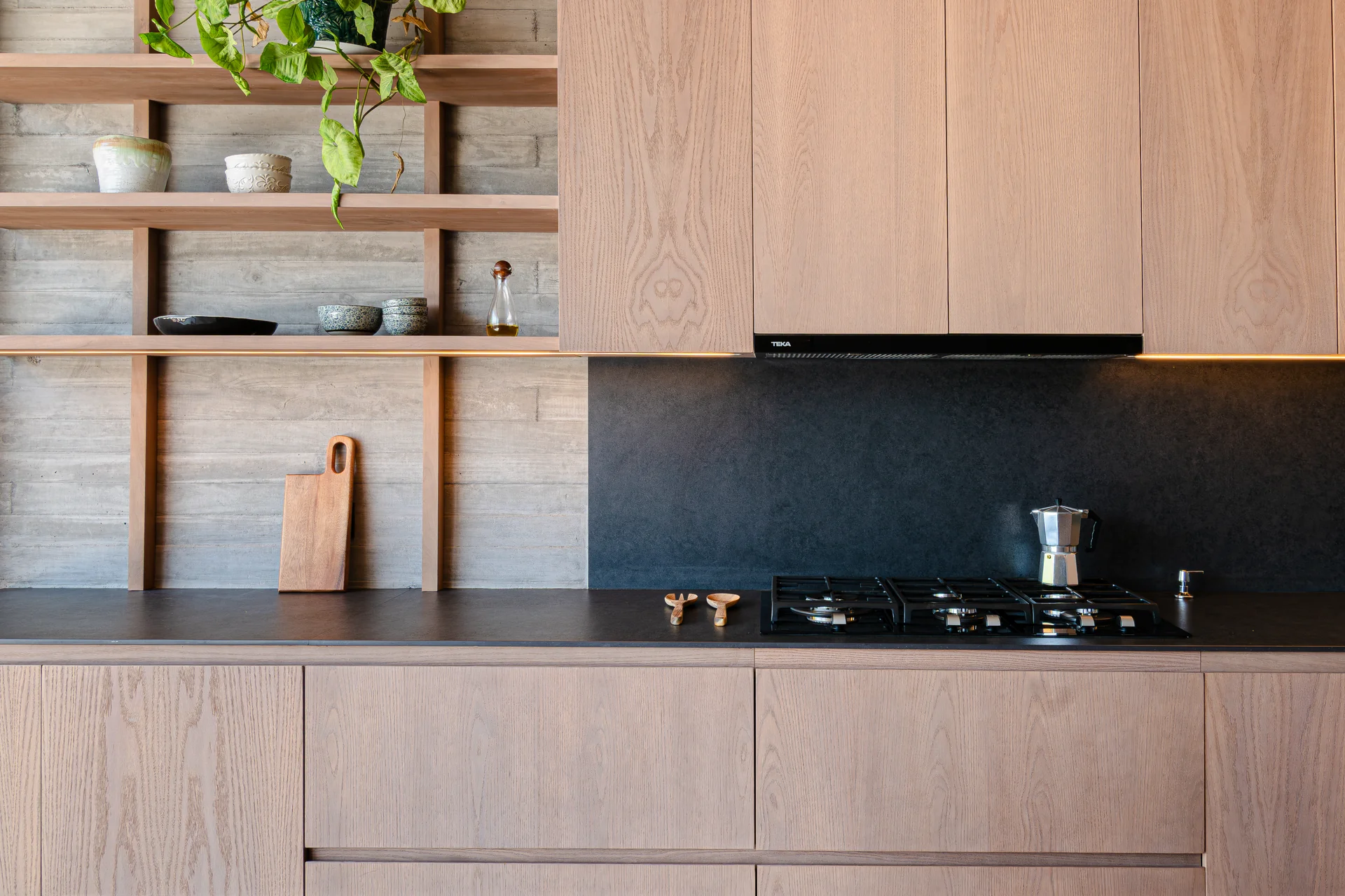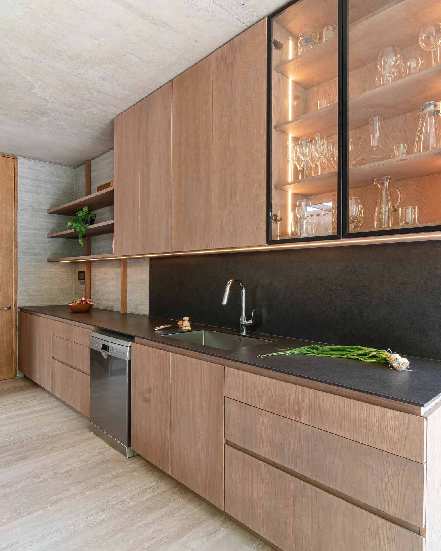 Este proyecto parte de una lectura atenta del espacio y de cómo se habita. La cocina Mirador se articula a partir de frentes lisos en madera, junto a cubiertas y salpicadero de piedra sinterizada, definidos como un conjunto coherente donde la materialidad y el uso cotidiano se integran con naturalidad. Cada decisión está orientada a ordenar el espacio y acompañar el día a día del hogar con naturalidad y continuidad.