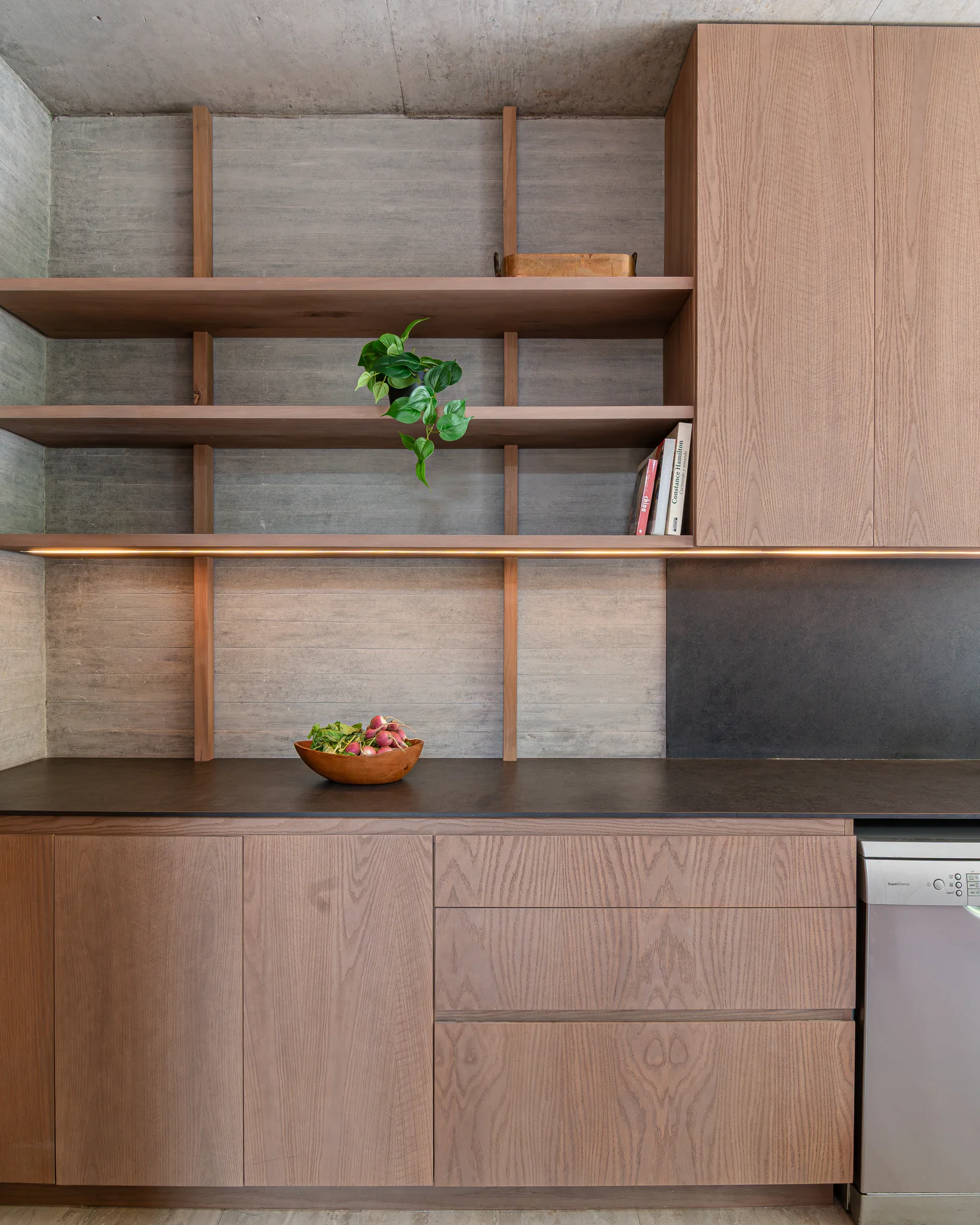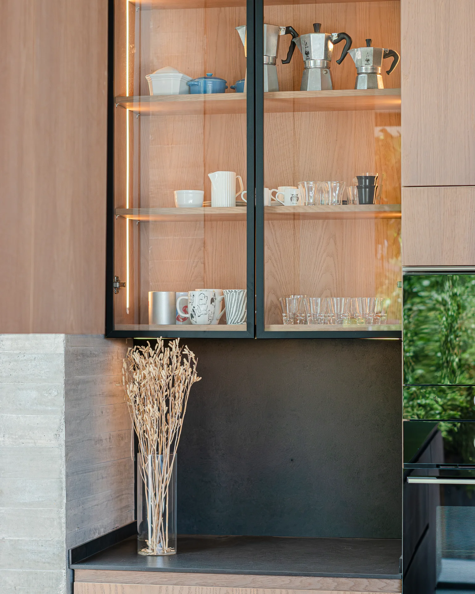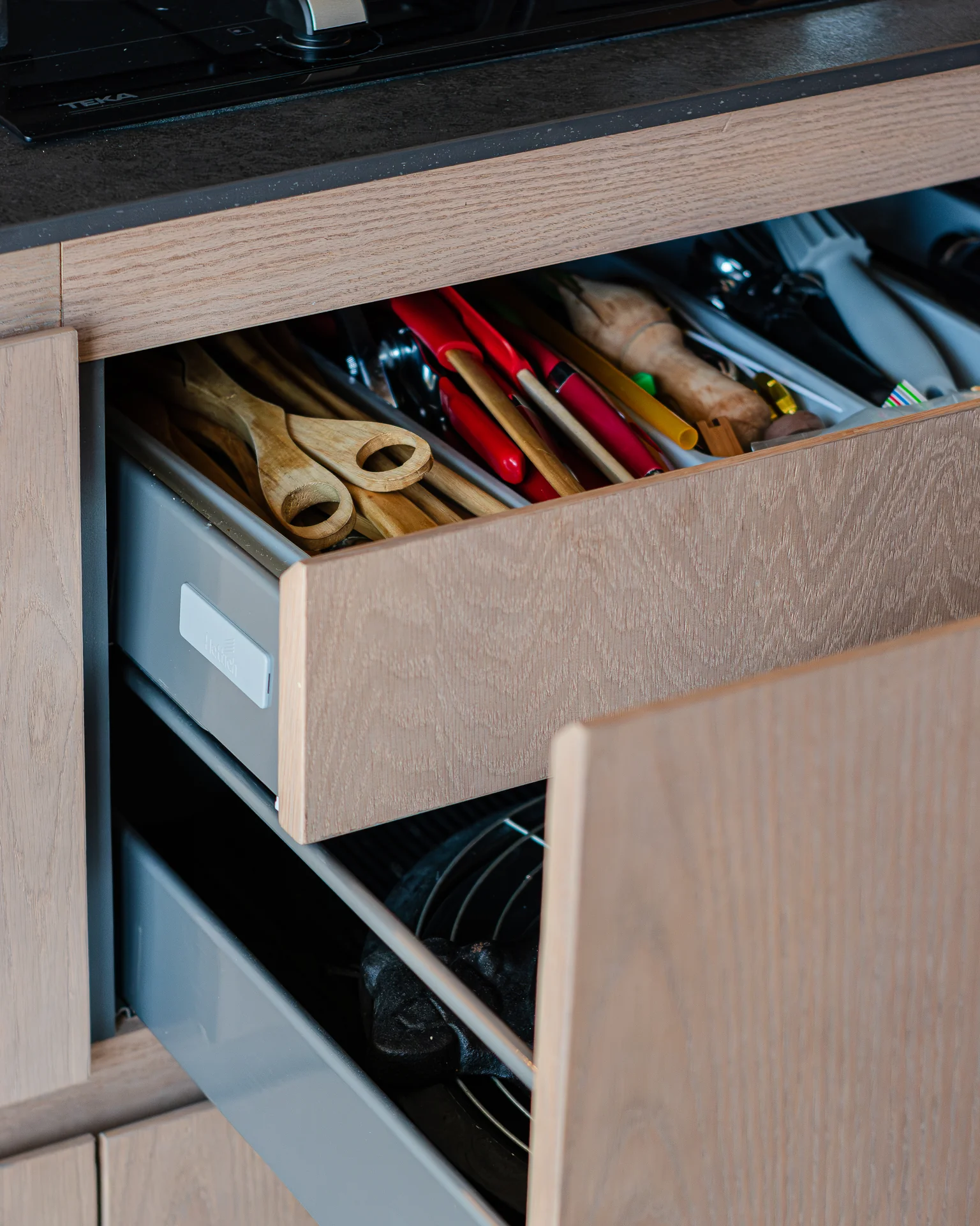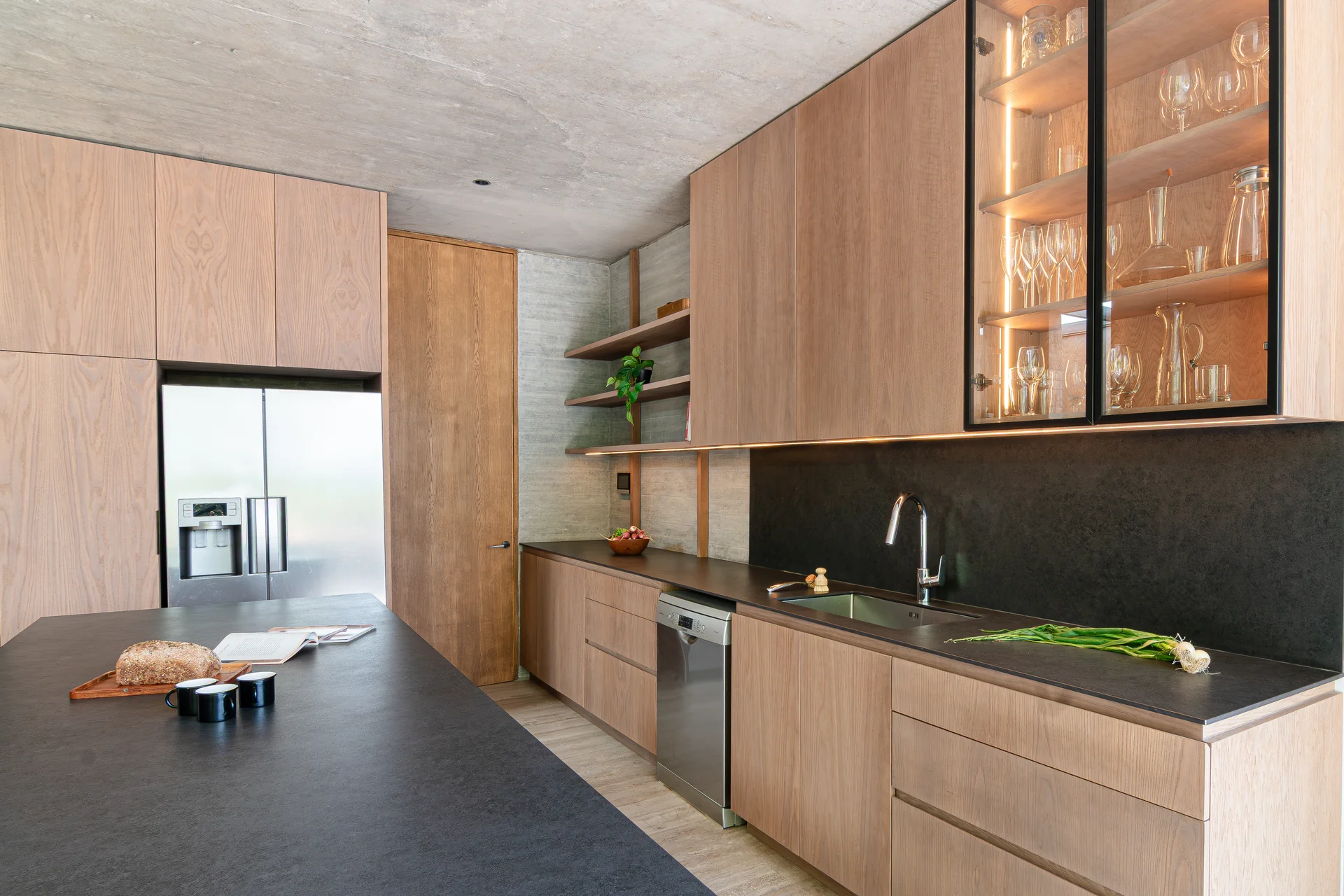 Este proyecto parte de una lectura atenta del espacio y de cómo se habita. La cocina Mirador se articula a partir de frentes lisos en madera, junto a cubiertas y salpicadero de piedra sinterizada, definidos como un conjunto coherente donde la materialidad y el uso cotidiano se integran con naturalidad. Cada decisión está orientada a ordenar el espacio y acompañar el día a día del hogar con naturalidad y continuidad.