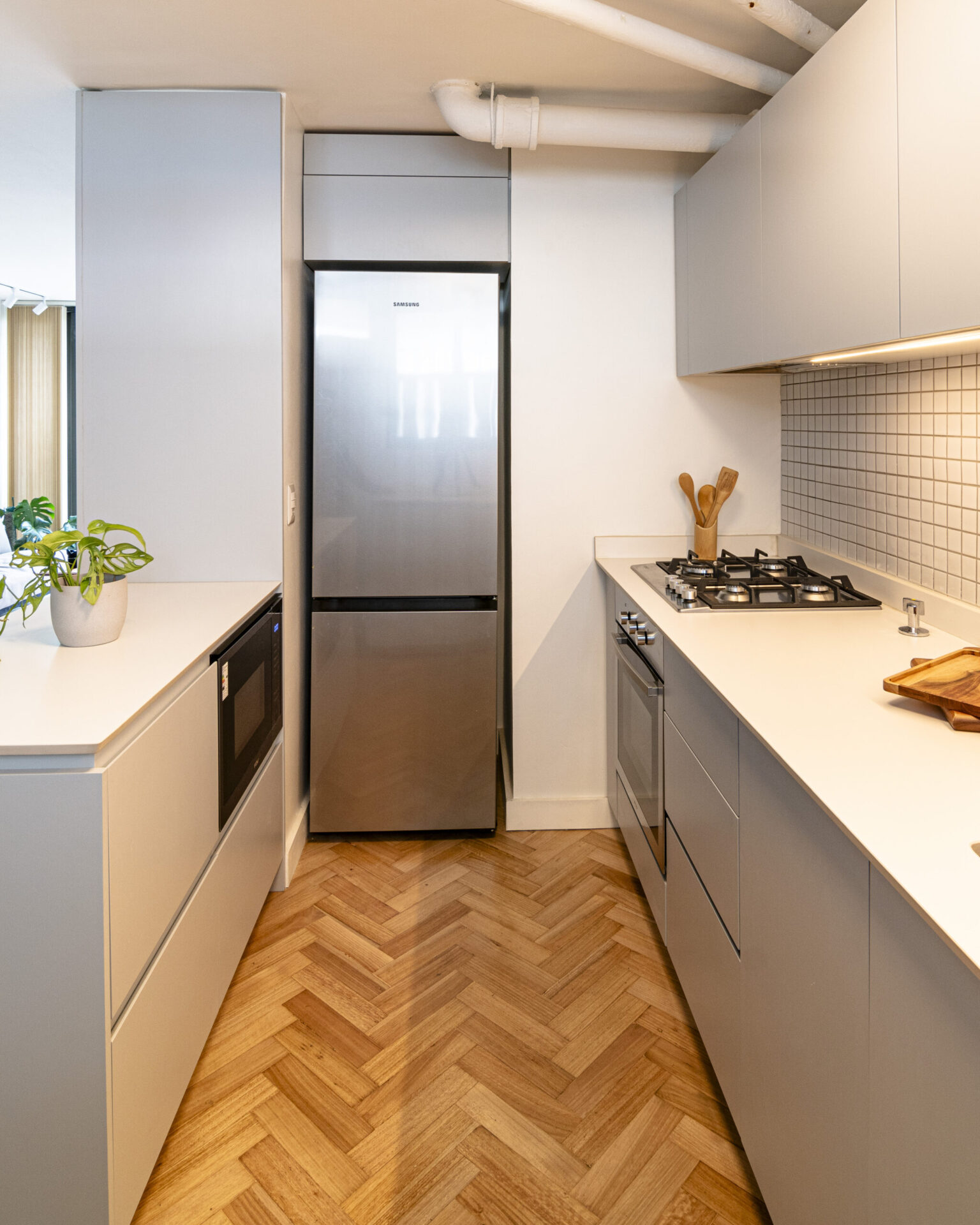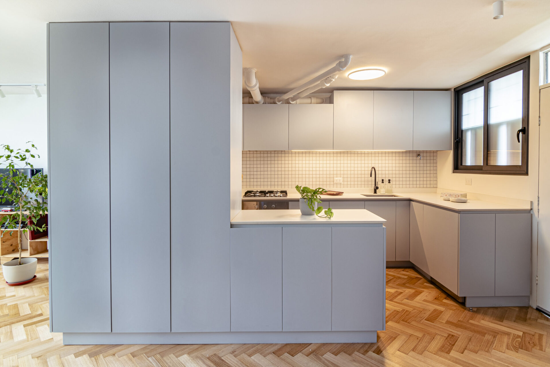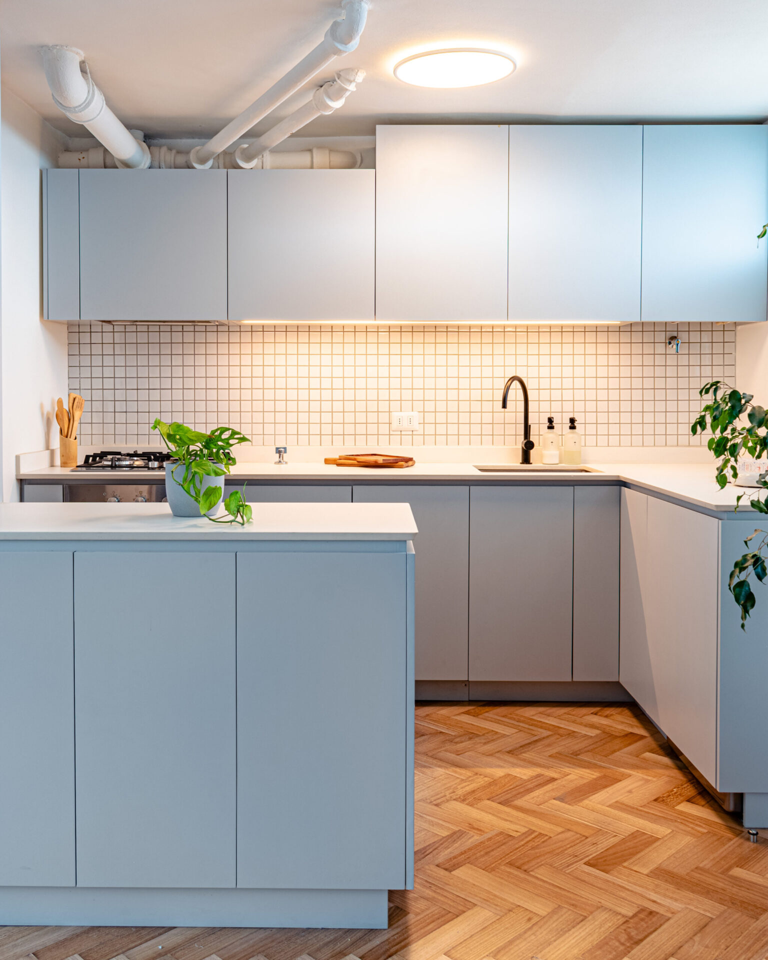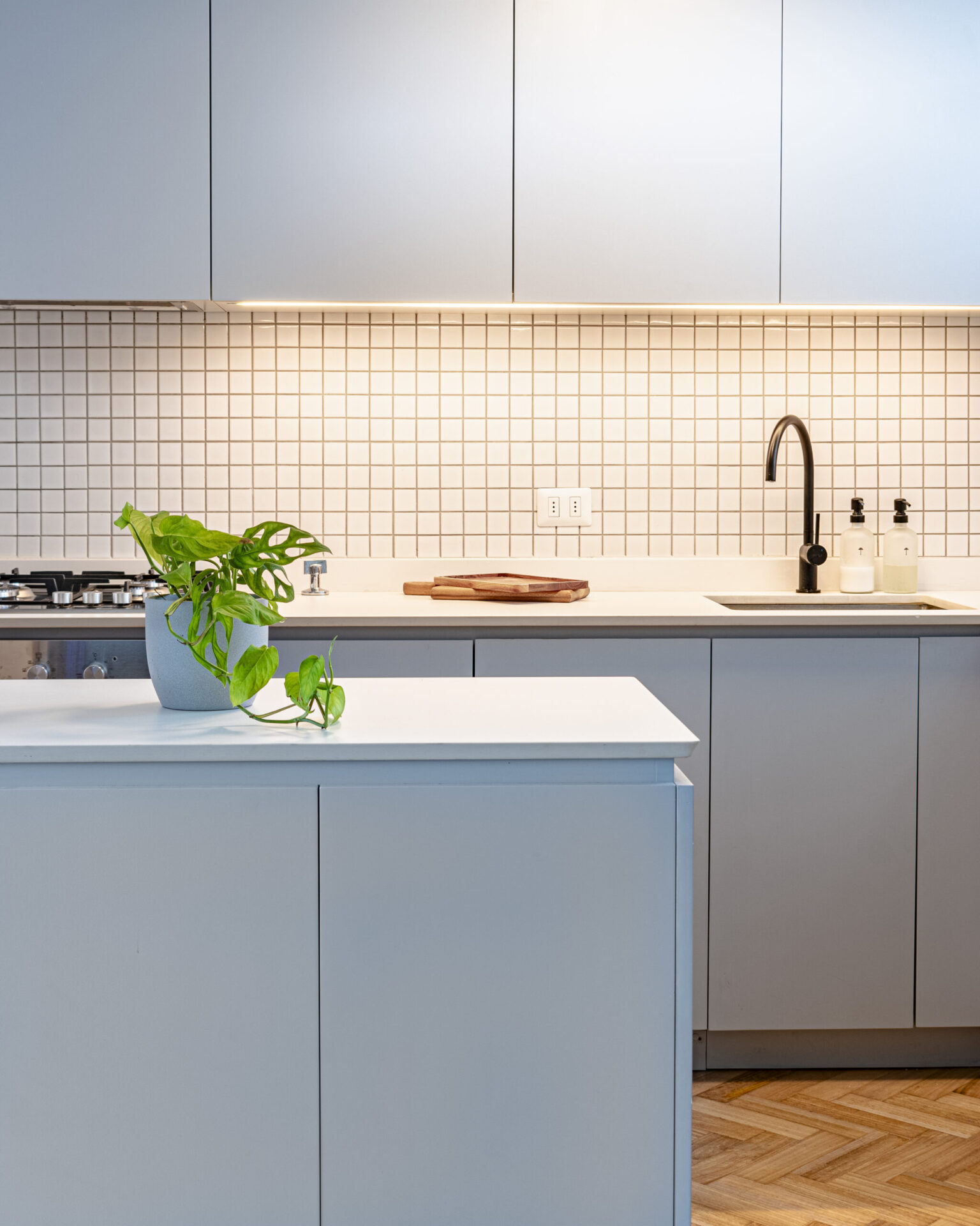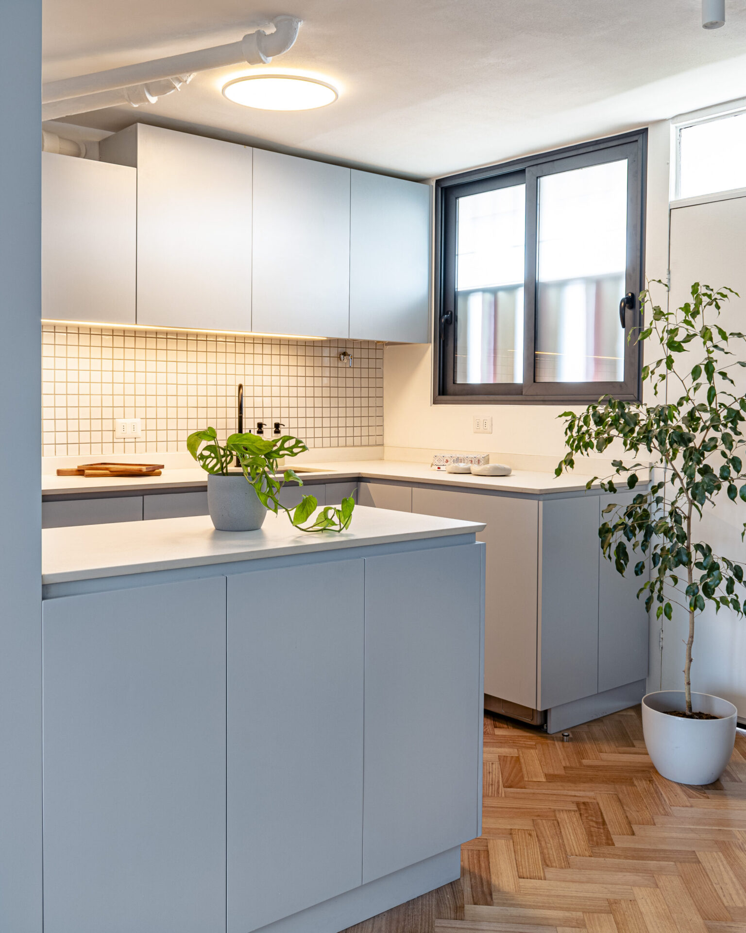 Este proyecto parte de una lectura atenta del espacio y de cómo se habita. La cocina Ritoque se articula a partir de frentes lisos de color, junto a cubiertas de cuarzo y salpicadero de cerámica, definidos como un conjunto coherente donde la materialidad y el uso cotidiano se integran con naturalidad. Cada decisión está orientada a ordenar el espacio y acompañar el día a día del hogar con naturalidad y continuidad.