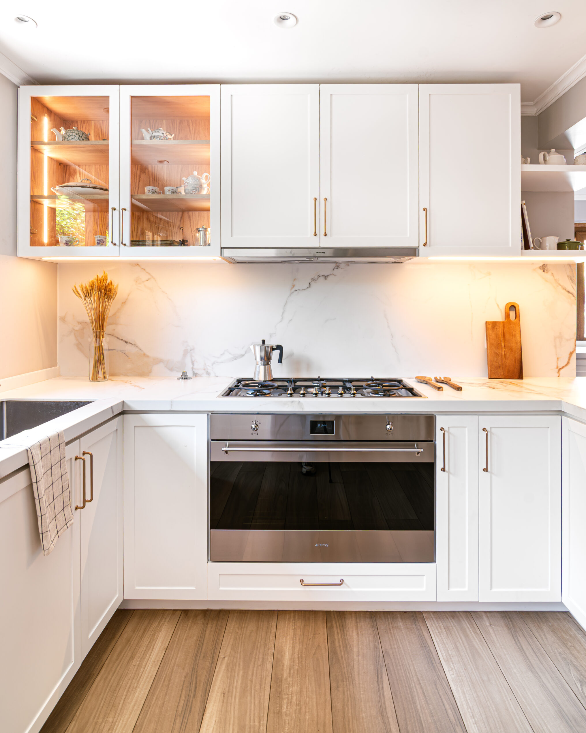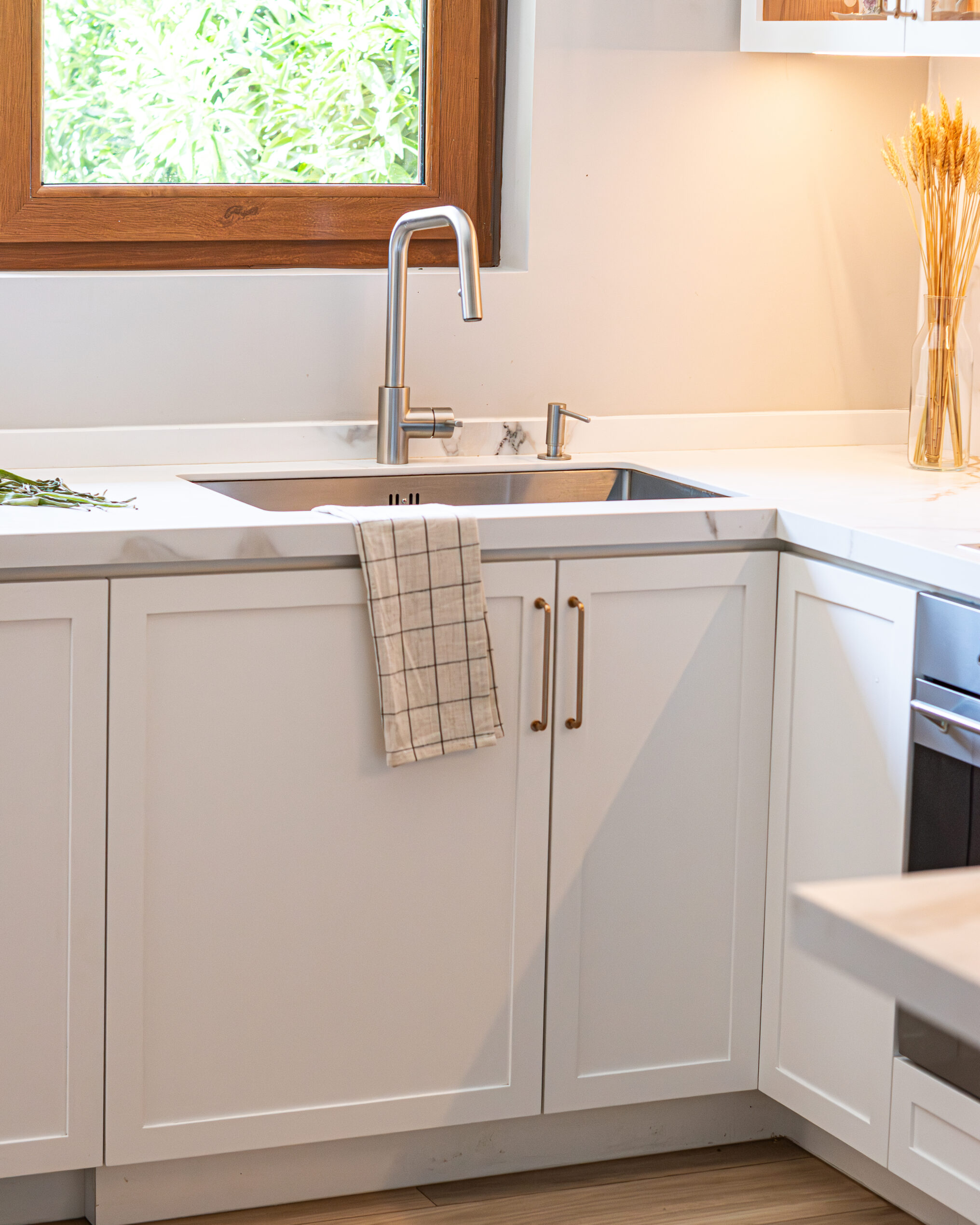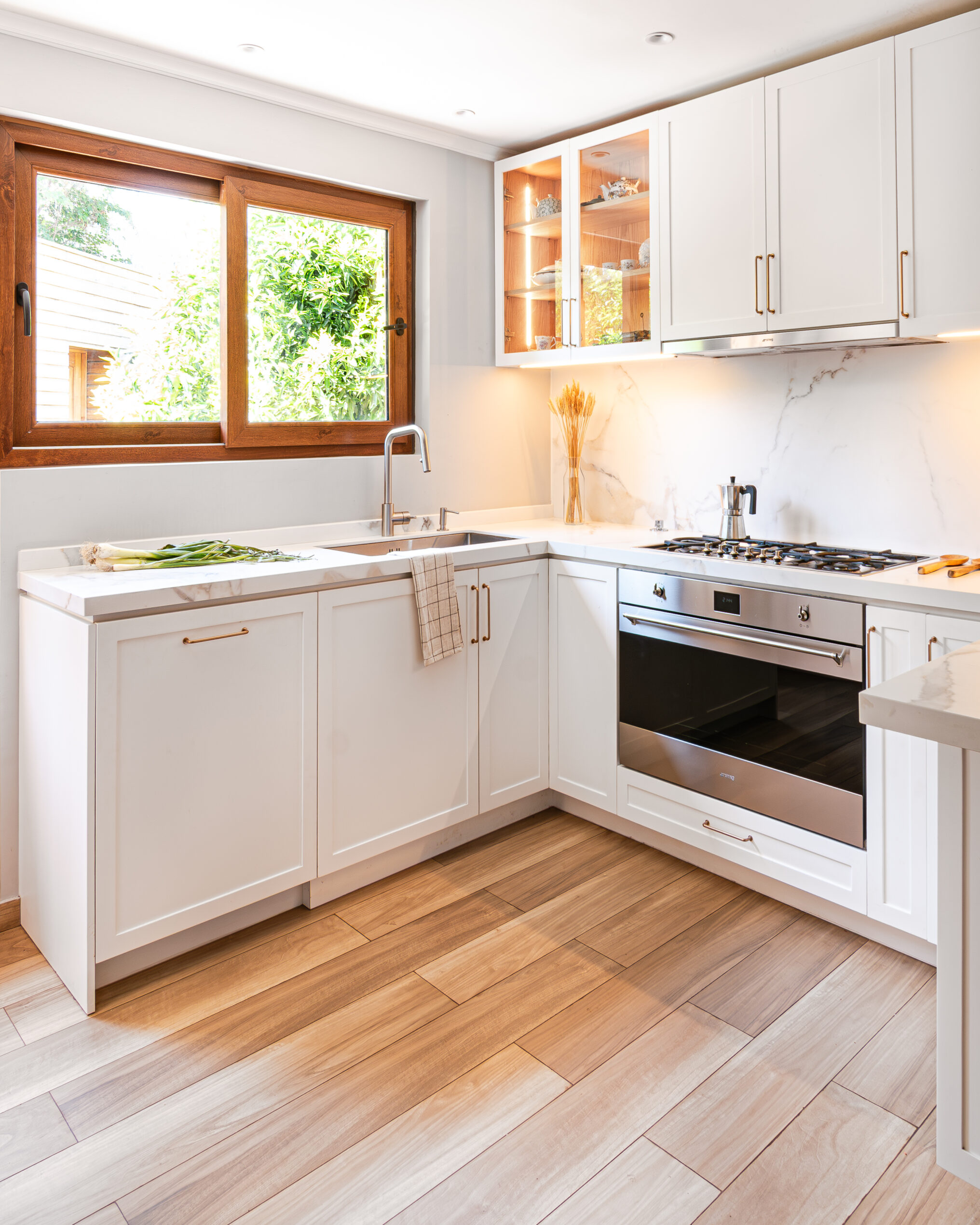 Este proyecto parte de una lectura atenta del espacio y de cómo se habita. La cocina Santo Toribio se articula a partir de frentes Shaker de color, junto a cubiertas y salpicadero de piedra sinterizada, definidos como un conjunto coherente donde la materialidad y el uso cotidiano se integran con naturalidad. Cada decisión está orientada a ordenar el espacio y acompañar el día a día del hogar con naturalidad y continuidad.